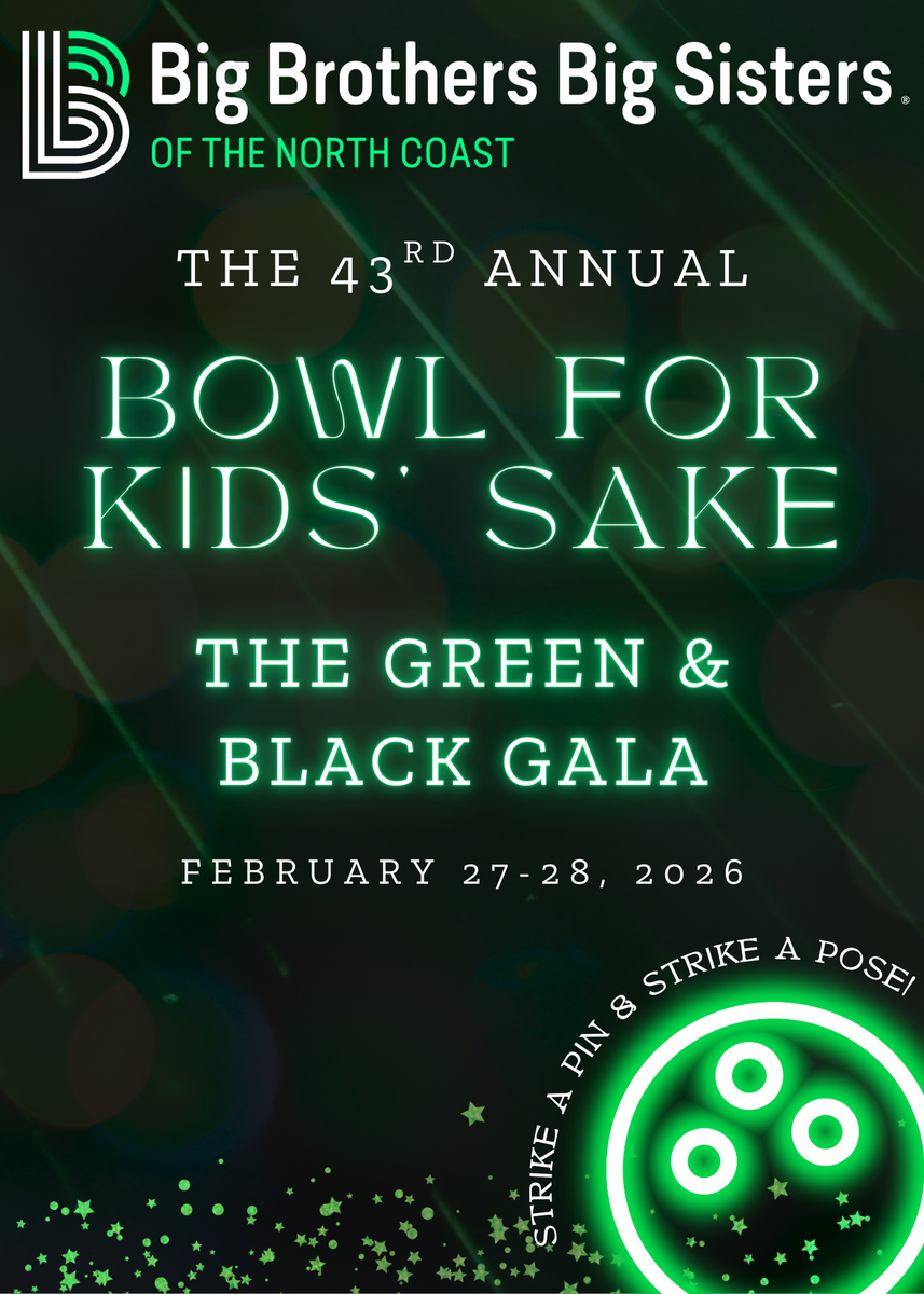 Please join Big Brothers Big Sisters of the North Coast in celebrating our 43rd annual Bowl for Kids’ Sake! Strike a pin & strike a pose! Form your team now for the Black & Green Gala. In honor of our signature colors, feel free to wear your finest black & green attire.